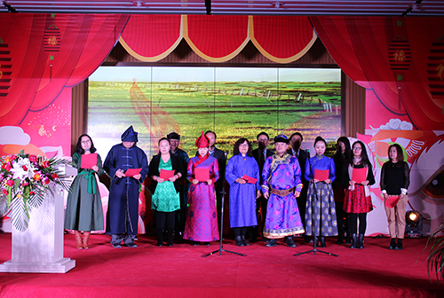 年会期间师生带来的表演精彩丰呈,开场舞《芳华草原》彰显了学子们的风华正茂;大合唱《美丽的草原我的家》唱出了草原儿女团结一致、奋发向上的精神;独唱《红军不怕远征难》蕴藏了教师们钻研学术的态度。与会期间穿插教师庆生环节,学院为其力格尔老师送上生日蛋糕,在歌声与祝福中尽显温暖工程。