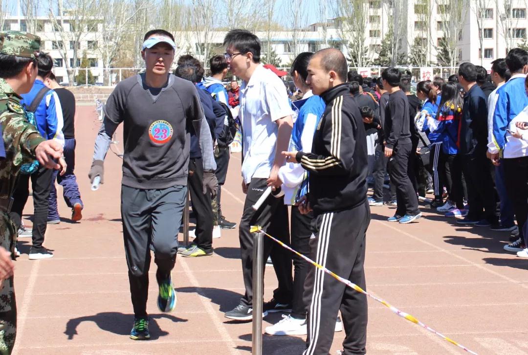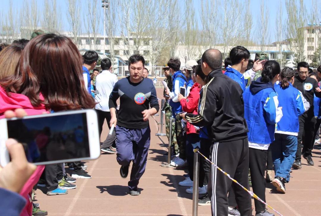4月14日,我院教职工在我院院长齐景伟、党委书记额尔敦的带领下在西区田径场参加万人接力赛。
