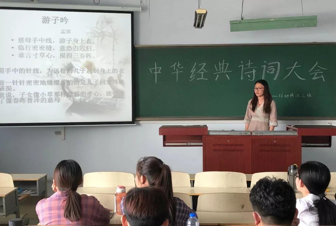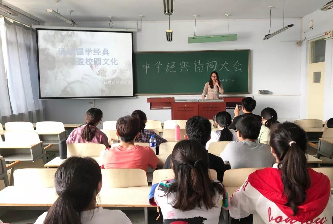 为弘扬中华优秀传统文化,切实加强中国特色社会主义文化建设。6月1日,16级动科汉三班在博学楼406举办了“中华经典诗词朗读大会”,团支书张崇姸主持此次班会。